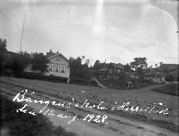 Enligt text på fotot: "Bångens skola i Herrestad den 12 aug. 1928".