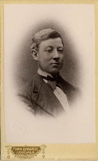Text på kortets baksida: "Johan Blomberg, död i Amerika 1905".
