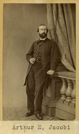 Text på kortets baksida: "Grosshandl. Artur Edvard Jacobi, född 1835 d. 1887. Dansk konsul.".