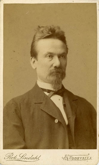 Text på kortets baksida:"Guldsmed Eklund, anställd hos gulds. Jonssén flyttade från Uddevalla 1887".