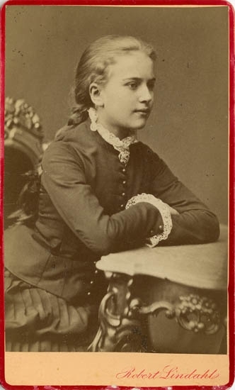 Text på kortets baksida: "Fröken Linnéa Fahlström, omkr. 1880".