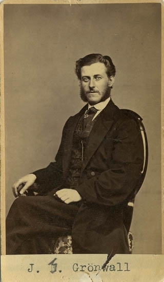 Text på kortets baksida: "Andre lärare vid Lancasterskolan i Uddevalla. J. G. Grönwall. Utsedd 31/5 1860 för.. i Sköfde".