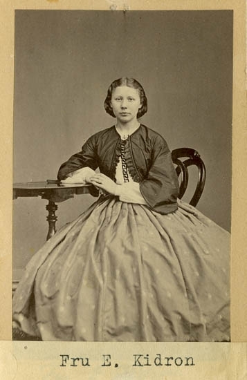 Text på kortets baksida: "Fru Emilie Kidron, f. Klingstedt. Gift med Nils Daniel Kidron".
