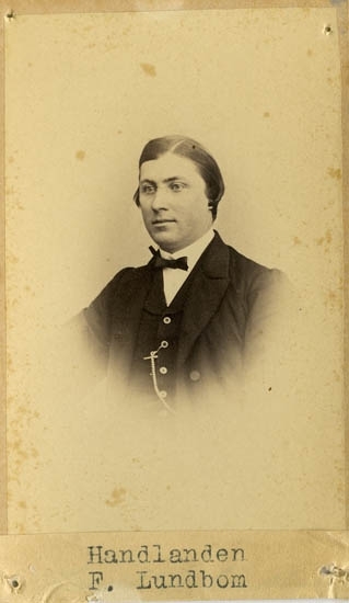 Text på kortets baksida: "Handl. Frans Lundbohm. Frans Lundbohm biträde hos B.J Hasselgren".