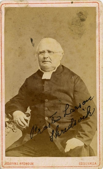 Text på kortets baksida: "Prosten Johan Larsson, f. 1806 Skredsvik".