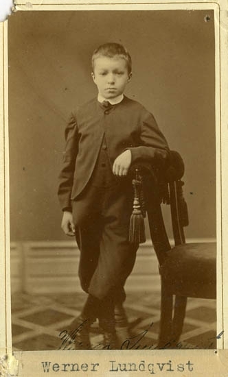 Text på kortets baksida: "Verner Lundqvist, f. 6/1 1868 d. 2/7 1943. Skeppsredare, Konsul. Donator".