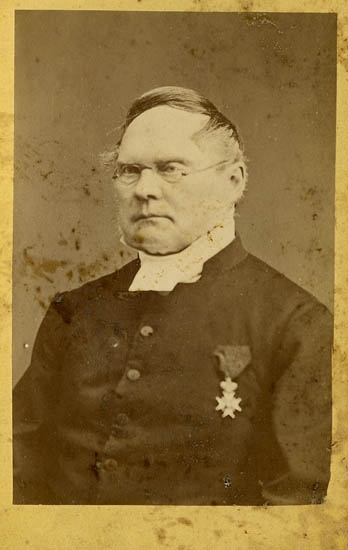 Text på kortets baksida: "Prosten, Theofron Gustaf Theodor Ljunggren, Strömstad. F 1812 d. 1900".