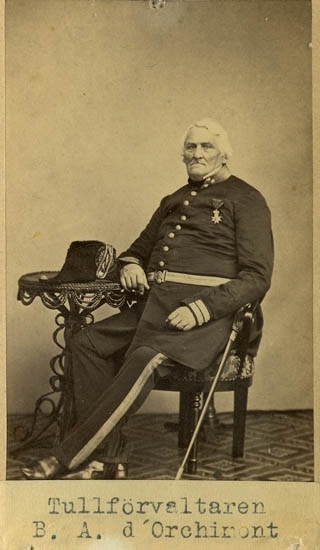 Text på kortets baksida: "Tullförvaltaren Bror Adam d Orchimont, f. 1790 d, 1875. SF 1863 67".