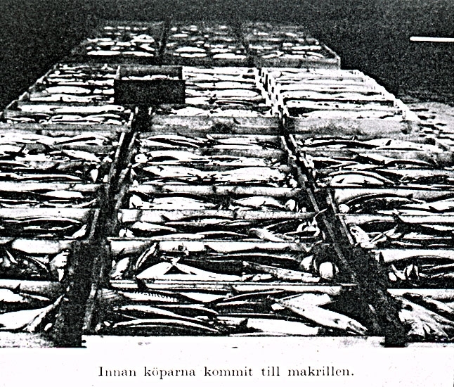 Text på skioptikonplåten: "Innan köparna kommit till makrillen."