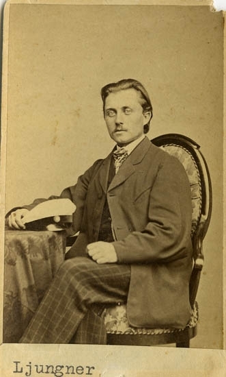 Text på kortets baksida: "Ljungner sedermera rektor, f 1866 d. 1935".
