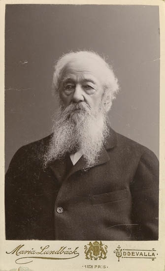 Text på kortets baksida: "Häradshöfdingen Axel Mauritz Rosenqvist. Då han fyllde Nitti år 1905".