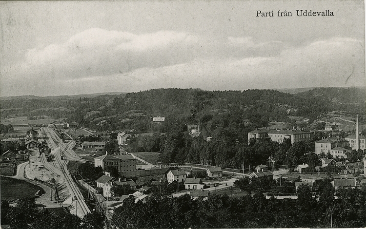 Tryckt text på vykortets framsida: "Parti från Uddevalla."