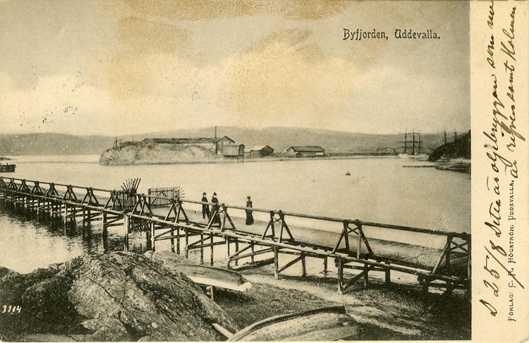 Tryckt text på vykortets framsida: "Byfjorden, Uddevalla."