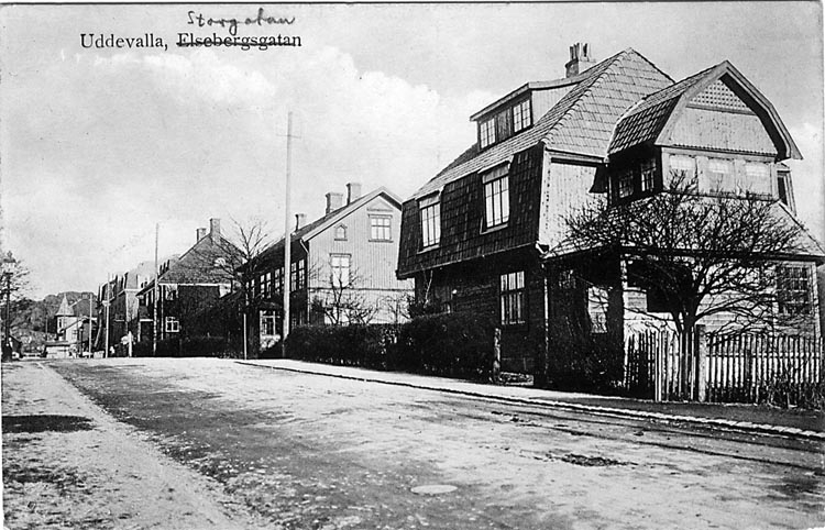 Tryckt text på vykortets framsida: "Uddevalla. Elsebergsgatan."