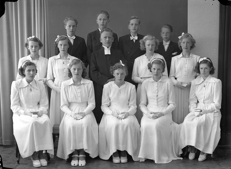 Enligt fotografens journal nr 7 1944-1950: "Ödsmåls Konfirmander. Kyrkorherde Norén".