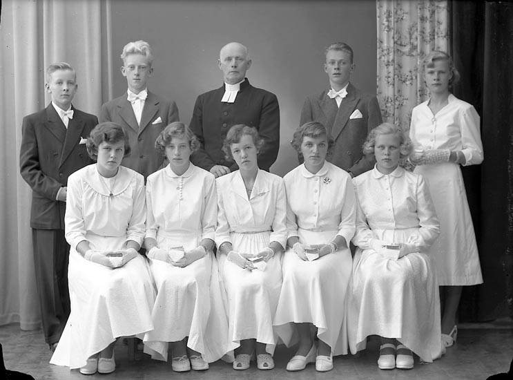 Enligt fotografens journal nr 8 1951-1957: "Konfirmander, Kyrkoh. Johnson Spekeröd".