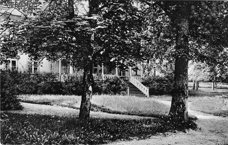 Tryckt text på vykortets baksida: "Uddevalla. Gustafsberg Societetshuset."