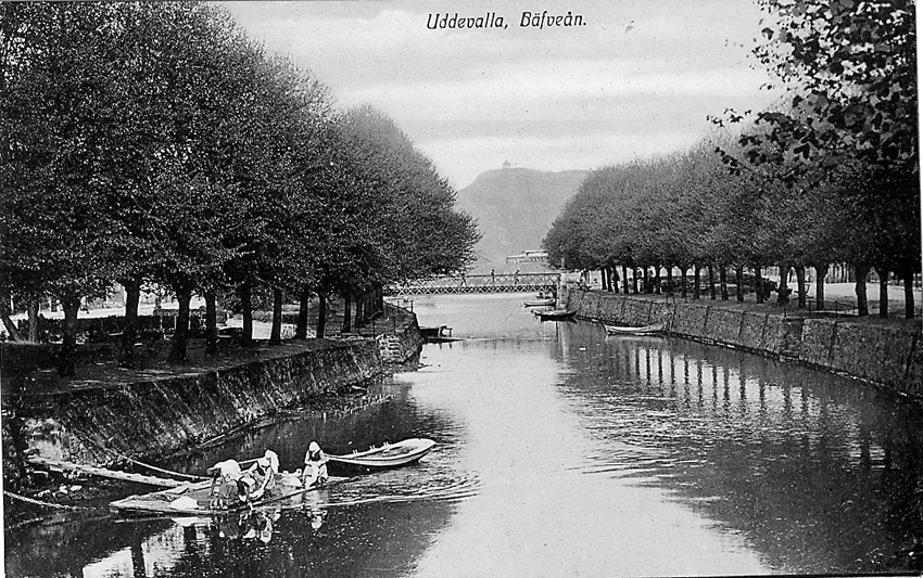 Tryckt text på vykortets framsida: "Uddevalla Bäfveån".