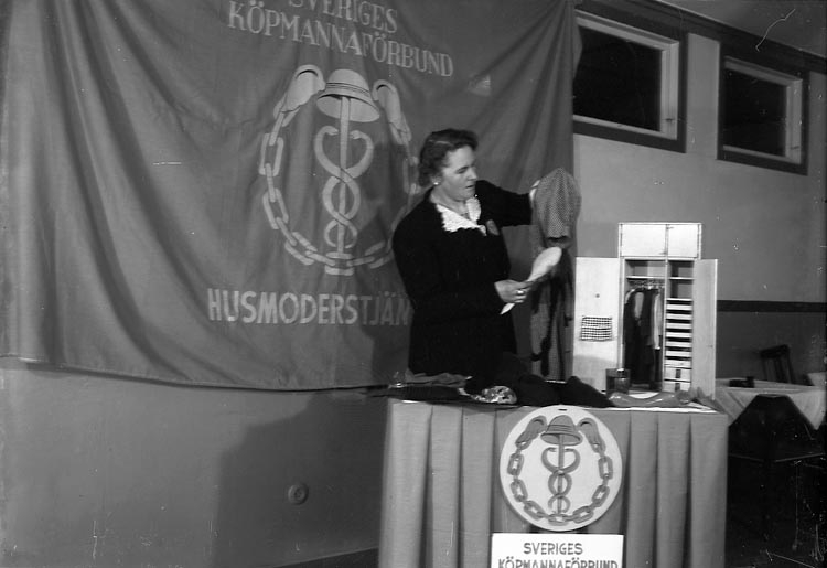 Enligt fotografens journal nr 7 1944-1950: "Köpmannaföreningens mannekänguppvisning". Enligt fotografens notering: "Köpmannaföreningens mannekänguppvisning Strand Hotell".