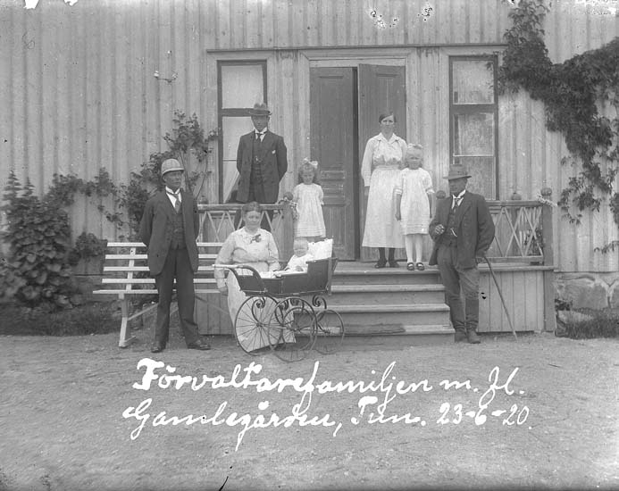 Skrivet på bilden: "Förvaltarfamiljen m.fl. Gamlegården, Tun. 23-6-20."