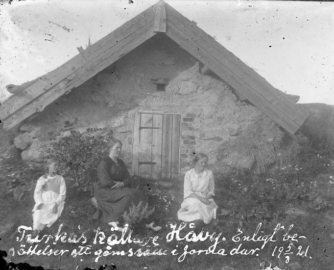 Text på bilden: "Turkas(?) källare i Håby. Enligt berättelser ett gömställe forna dar. 5/8