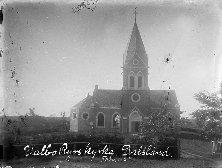 Enligt text på fotot: "Valbo Ryrs kyrka, Dalsland. Foto 1920".