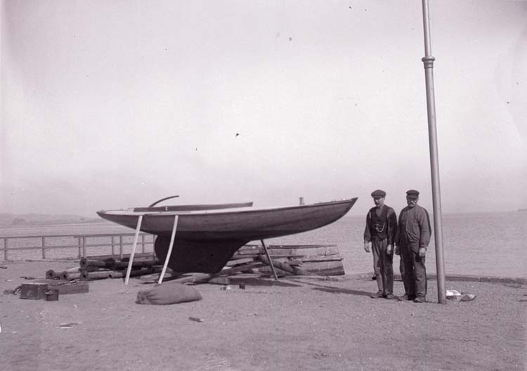Enligt text som medföljde bilden "Utlottningsbåt m. Carlsson och Calle vid Badhuset 1918/1919".