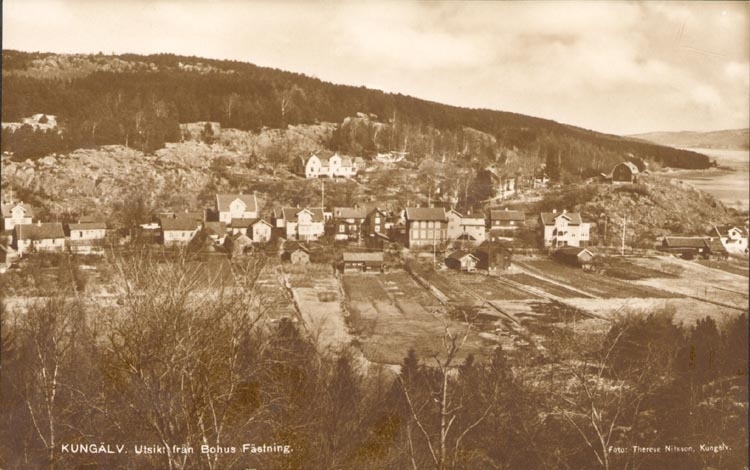Tryckt text på kortet: "KUNGÄLV. Utsikt från Bohus Fästning".