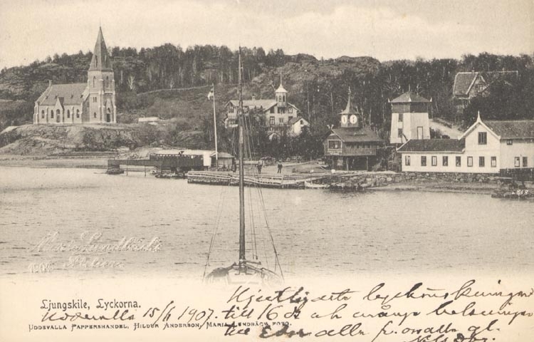 Tryckt text på kortet: "Ljungskile, Lyckorna".