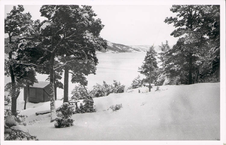 "Uts. fr. fam. Hedvalls villa "Hindsbo" sso. över fjorden. Vintern 57."