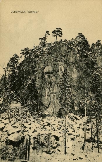 Tryckt text på vykortets framsida: "Uddevalla, Schweiz."