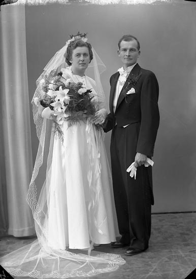 Enligt fotografens journal nr 8 1951-1957: "Svensson, Brudpar, Elmer, Hantverkarg. 2 Kungälv".