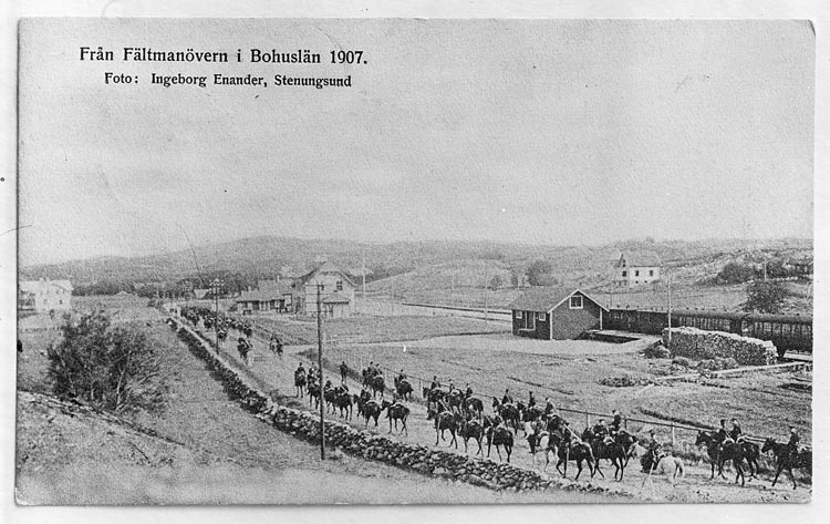 Enligt notering på kortet: "Från Fältmanövern i Bohuslän 1907. Foto: Ingeborg Enander, Stenungsund".