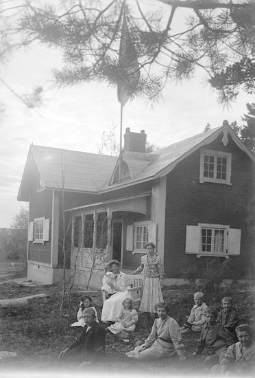 Enligt fotografens journal nr 2 1909-1915: "Kristinedal, Fr. Anny Andersson gr. vid stugan".