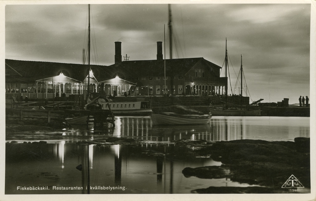 Text på kortet: "Fiskebäckskil. Restauranten i kvällsbelysning".