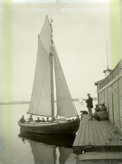 Enligt text som medföljde bilden: "Badgästbåt vid H.B."