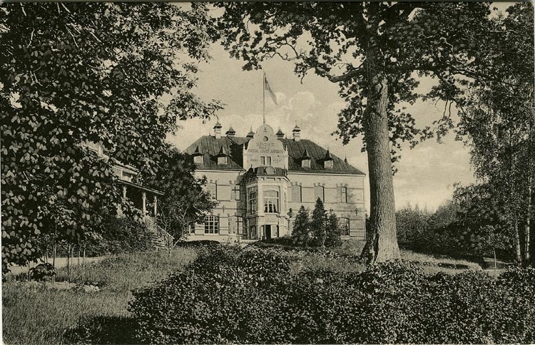 Tryckt text på vykortets framsida: "Uddevalla. Gustafsberg Barnhuset."