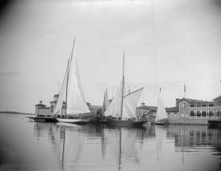 Vikens utlottningsbåt för 1897 Isa och Götarnas utlottningsbåt för 1898 Trollsländan liggande vid herrbassinen, taget d.26/6 1898".