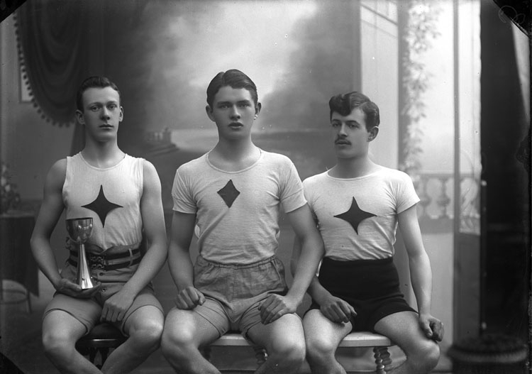 Enligt tidigare noteringar: "Uddevalla. Ateljefoto, tre idrottsmän med pris."