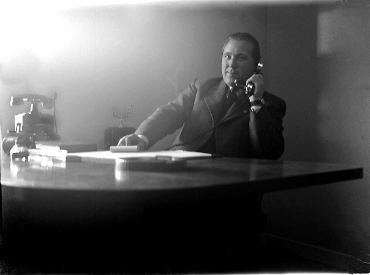 Enligt senare noteringar: "Disponent Hjalmar Sohlberg i firma Axel Sohlbergs Trävaru AB, vid sitt skrivbord." (BJ)