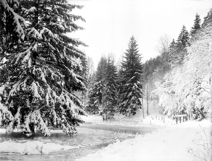 Enligt senare noteringar: "Vinterbild från Trollsjön vid Torreby." (BJ)