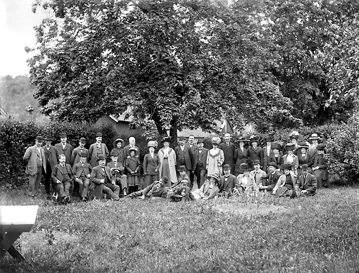 Enligt noteringar: "Gruppbild i trädgården vid Gästgivargården." (BJ)