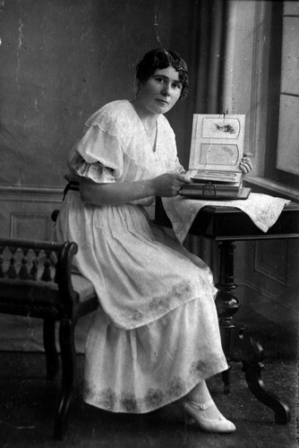 Kvinna med fotoalbum::