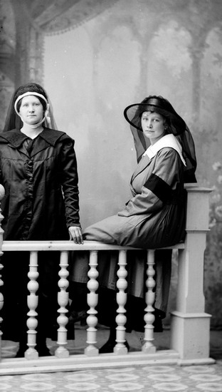 Ateljefoto, kvinnor i sorgdräkt