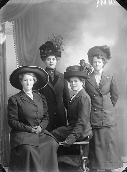 Enligt senare noteringar: "Ateljéfoto av fyra damer, klädda i dräkter och hattar."