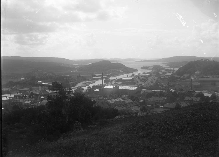 Enligt tidigare noteringar: "Utsikt från Kålgårdsberget över Uddevalla hamn och Byfjorden mot sydväst."