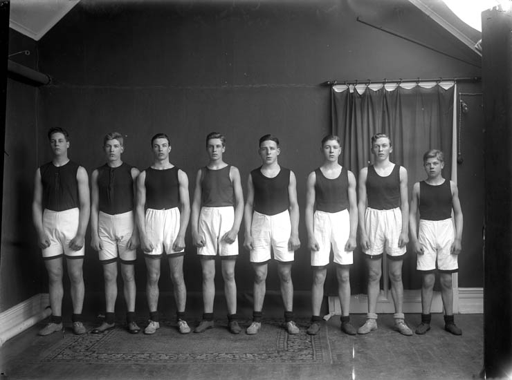 Enligt tidigare noteringar: "Ateljéfoto av idrottsmän.."