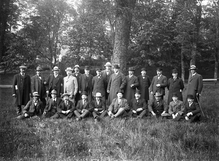 Enligt tidigare noteringar: "Gruppfoto, samling herrar i en park."