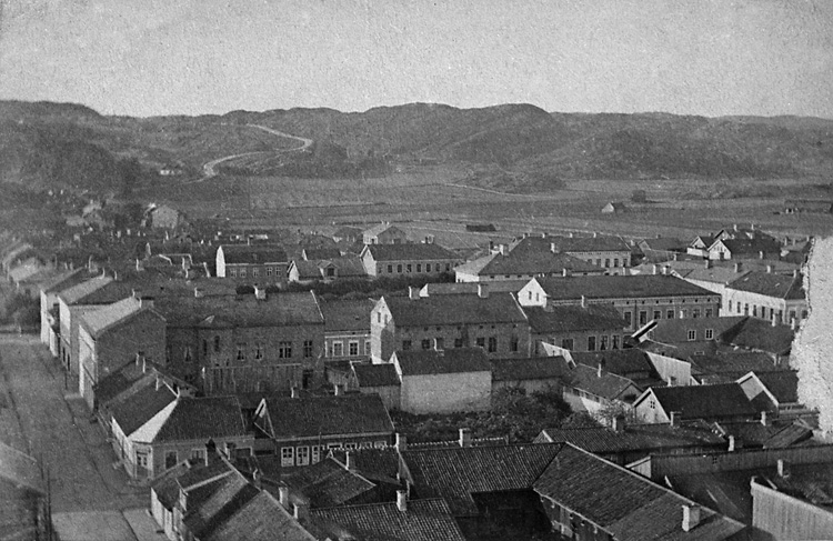 Enligt tidigare noteringar: "Utsikt från Kålgårdsberget mot väster övre del av bebyggelse i Uddevalla. I bakgrunden den slingrande Kappelebacken, utfarten mot söder."