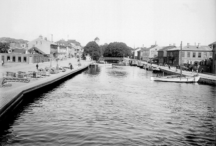 Enligt tidigare notering: "Hamnen väster om Järnbron med hamngatorna. Huset på hörnet av N. Hamngatan under rivning."